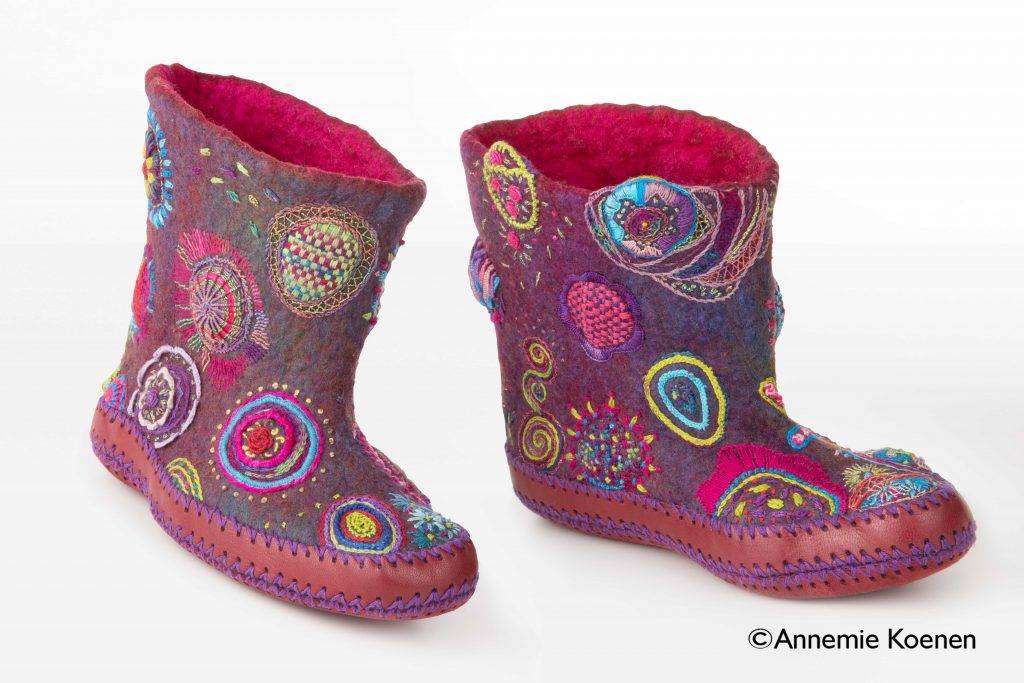 Zunächst stellen wir den Vorfilz her, welchen wir anschließend durch Nähen weiterverarbeiten. Anschließend haben filzen wir die Arbeit. Nach dem Spülen und Schleudern erwecken wir die Arbeit zum Leben und formen sie anschließend zu einem wunderbar tragbaren Kragen.
